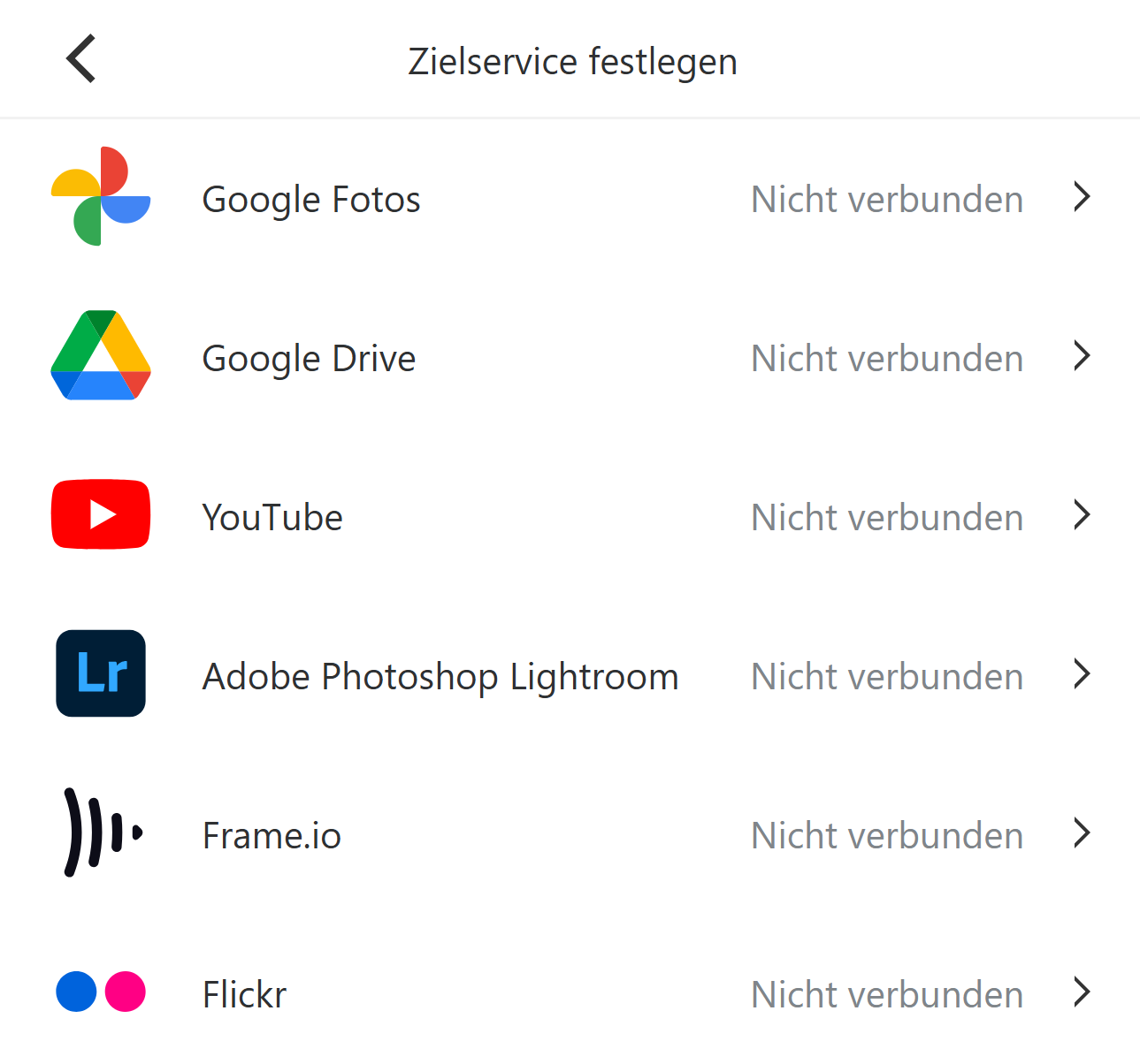 Wählen Sie den Dienst aus, mit dem Sie sich verbinden möchten, um den Einstellungsbildschirm zu öffnen.
