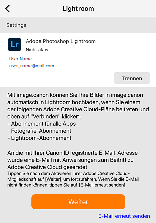 Wenn Sie derzeit kein passendes Abonnement haben, erhalten Sie eine Benachrichtigung per E-Mail an Ihre Canon-ID-E-Mail-Adresse.