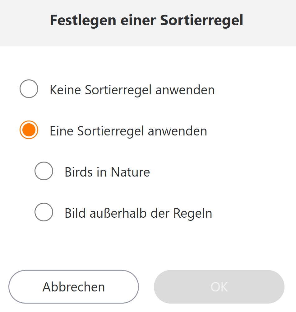 Wenn Sie „Bilder, die keiner Sortierregel entsprechen“ auswählen, werden Bilder übertragen, die keiner Regel entsprechen.