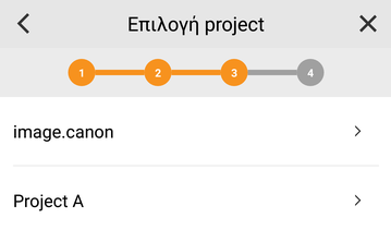 Επιλέξτε ένα έργο. Εάν δεν έχετε έργο, θα δημιουργηθεί και θα επιλεγεί το έργο "image.canon".