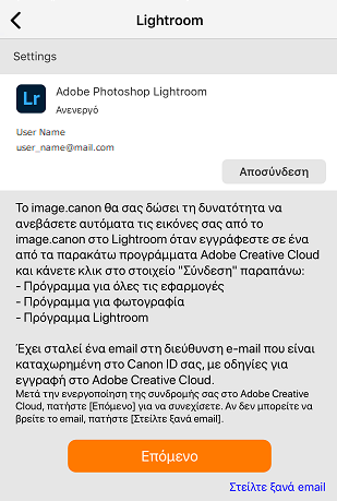 Εάν δεν είστε εγγεγραμμένος σε κάποιο επιλέξιμο πρόγραμμα, θα λάβετε ένα email ειδοποίησης για τη συνδρομή σας στο πρόγραμμα Adobe στη διεύθυνση email σας Canon ID.