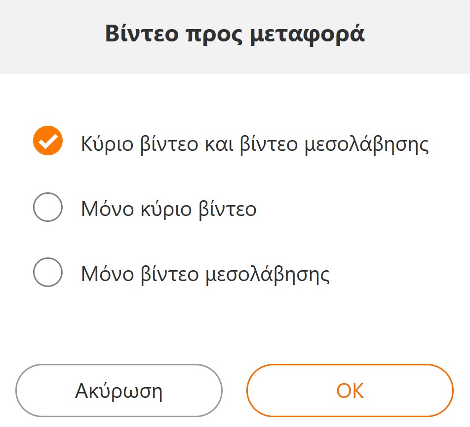 Επιλέξτε μια επιλογή για [Βίντεο προς μεταφορά].