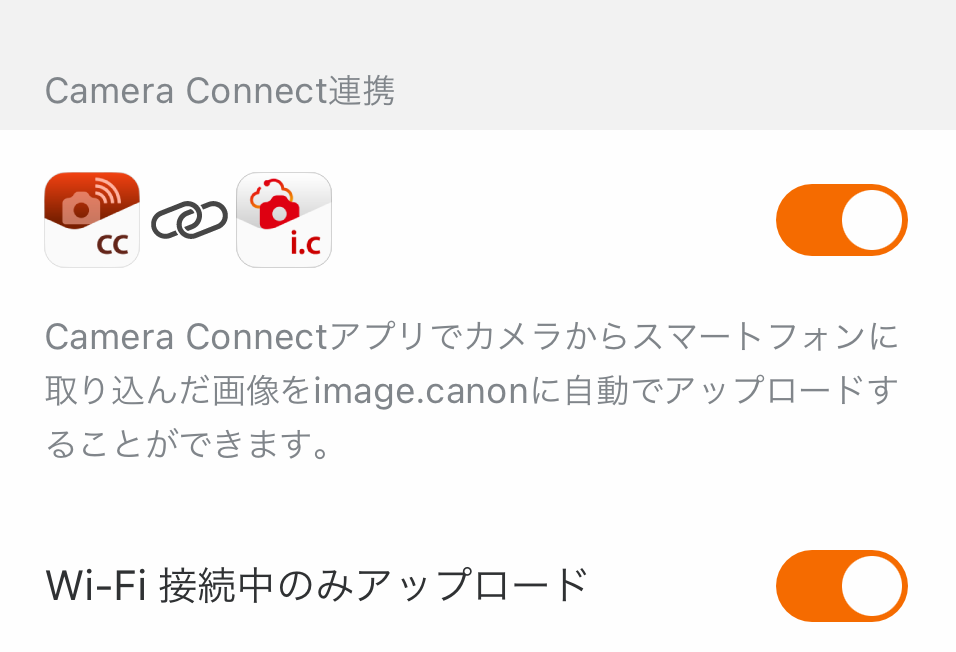 を開き、[Camera Connect連携]ボタンを有効にします。