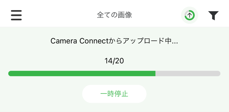 image.canonアプリが起動し、取り込んだ画像をimage.canonへアップロードします。image.canonアプリがバックグラウンドに移動してもアップロードは動作します。