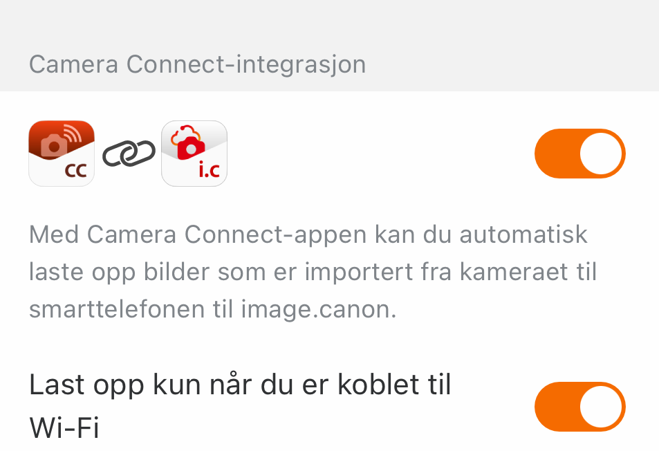 Hvis du deaktiverer [Upload only when connected to Wi-Fi], lastes bildene opp automatisk enten du er koblet til Wi-Fi eller via mobildata. Wi-Fi refererer til Wi-Fi-tilkoblingen mellom mobilenheten din og et tilgangspunkt.