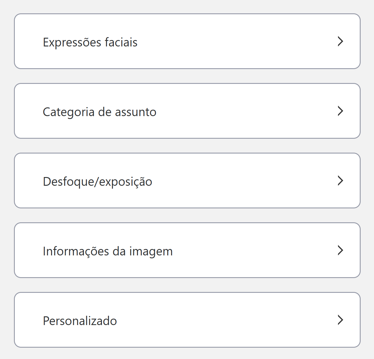 Avaliada com base em padrões proprietários do image.canon. A funcionalidade e o desempenho da classificação automática de imagens nem sempre corresponderão às suas intenções ou expectativas. Se o tamanho do rosto for pequeno, ele não poderá ser detectado. Portanto, não é possível realizar a classificação e a nitidez de rostos, olhos não fechados e detecção de sorrisos. Quando o rosto estiver inclinado para cima, para baixo, para a esquerda ou para a direita, poderá não ser possível executar corretamente a classificação e a nitidez do rosto, olhos não fechados e detecção de sorrisos. Com relação a imagens com rostos ligeiramente fora de foco, imagens que não estão corretamente focadas ou imagens muito escuras ou muito claras, pode não ser possível executar corretamente a classificação de rostos, olhos não fechados e detecção de sorrisos. Se o assunto dentro da imagem for extremamente pequeno, cortado ou a imagem inteira estiver escura, é possível que a análise de categoria de assunto não classifique as imagens de acordo com a sua intenção ou expectativa. Em cenas retroiluminadas, cenas com vista noturna e cenas com neve, etc., é possível que a análise de exposição não classifique as imagens conforme a sua intenção ou expectativa. Se a resolução de imagem for baixa, a imagem inteira estiver escura ou a área com foco for extremamente menor em relação ao tamanho da imagem, é possível que a análise de desfoque não esteja de acordo com a sua intenção ou expectativa. O mecanismo de análise e os padrões de análise do image.canon diferem da análise de desfoque da unidade principal da câmera. Se as imagens carregadas para o image.canon forem salvas em um cartão SD e devolvidas para a câmera, e você realizar tarefas de edição, como rotação ou pontuação da imagem na câmera, talvez não seja possível reproduzi-las na câmera ou pode ser que elas estejam corrompidas. |