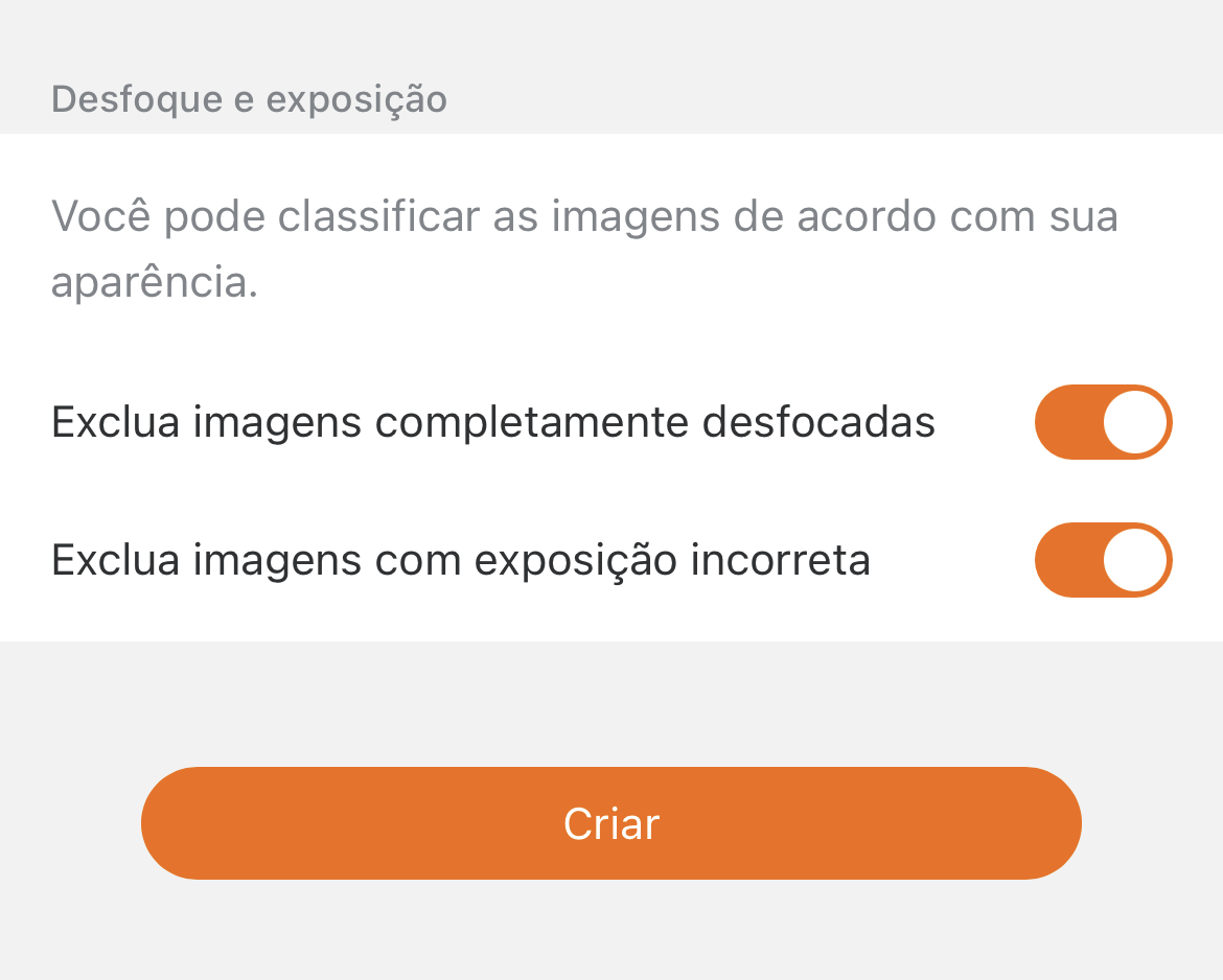 Você pode classificar por tipo de imagem (JPEG, HEIF, RAW). |