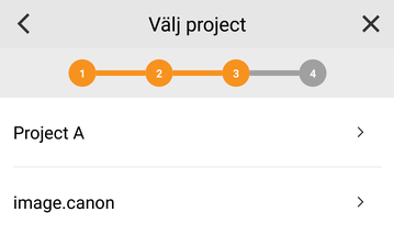 Välj ett projekt. Om du inte har något projekt skapas och väljs projektet "image.canon".