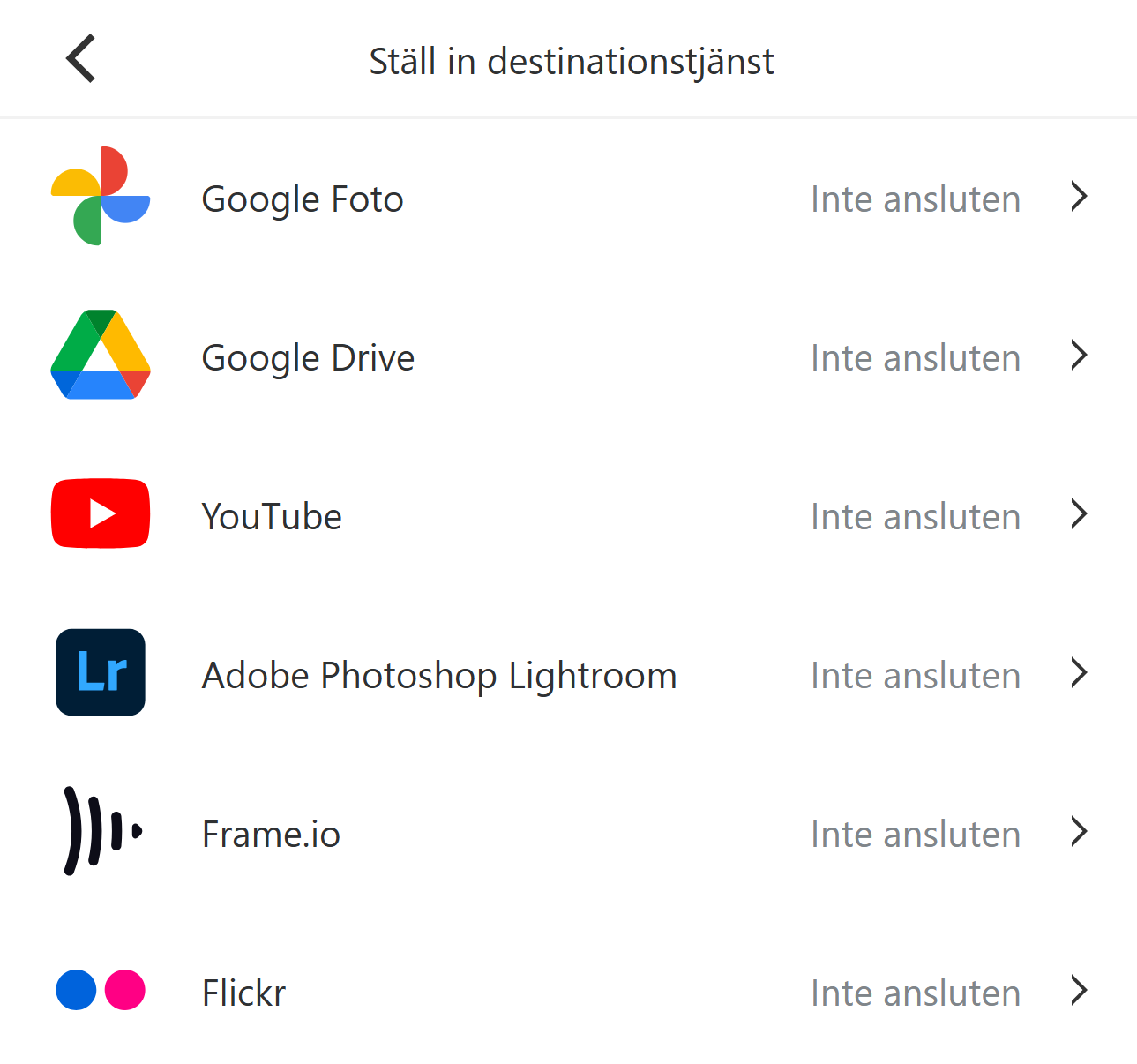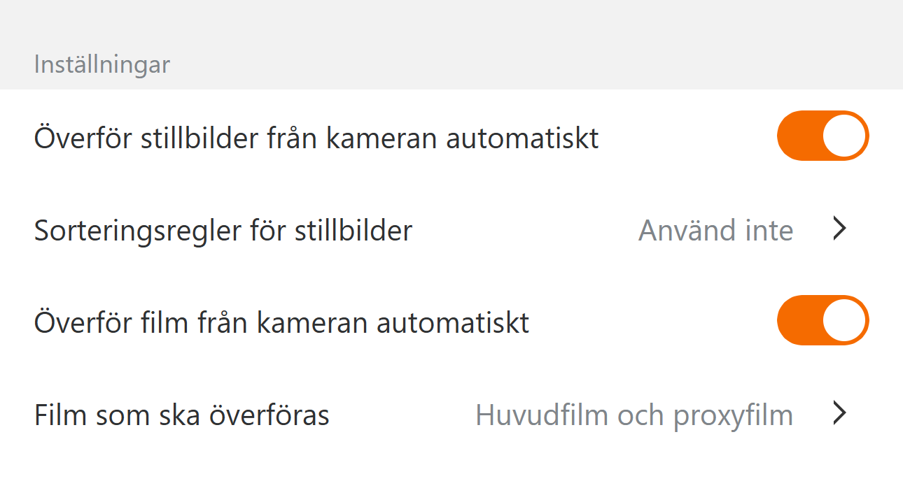 Vidarebefordra bilder automatiskt till Google Foto, Google Drive, Adobe Lightroom och Frame.io. Bildinformation som används för sortering kommer att finnas tillgänglig på destinationen.