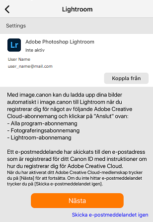 Om du för närvarande inte prenumererar på ett kvalificerat abonnemang får du ett e-postmeddelande om prenumeration på Adobe-abonnemanget till din Canon ID-e-postadress.