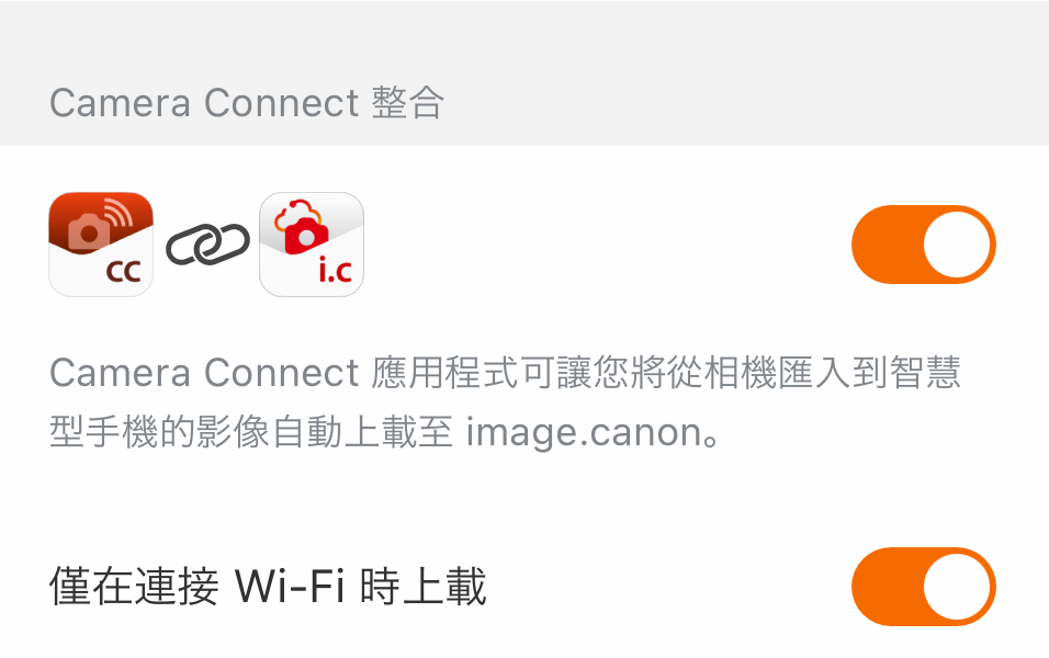 如果您停用 [僅在連接 Wi-Fi 時上傳],則無論您是連接 Wi-Fi 還是透過行動數據,影像都會自動上傳。 Wi-Fi 指的是您的行動裝置與存取點之間的 Wi-Fi 連線。