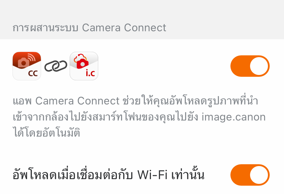 และเปิดใช้งานปุ่ม [การผสานรวม Camera Connect]