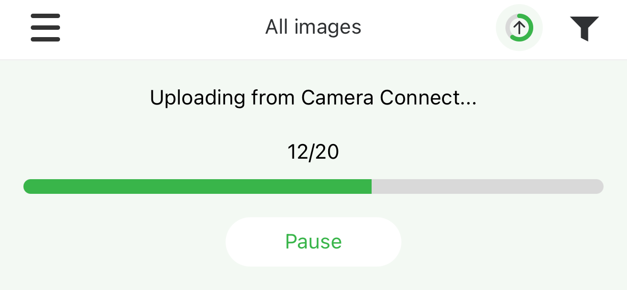 แอป image.canon จะเปิดขึ้นและอัปโหลดภาพที่นำเข้าไปยัง image.canon การอัปโหลดจะดำเนินต่อไปแม้ว่าแอป image.canon จะถูกย้ายไปทำงานในพื้นหลังก็ตาม