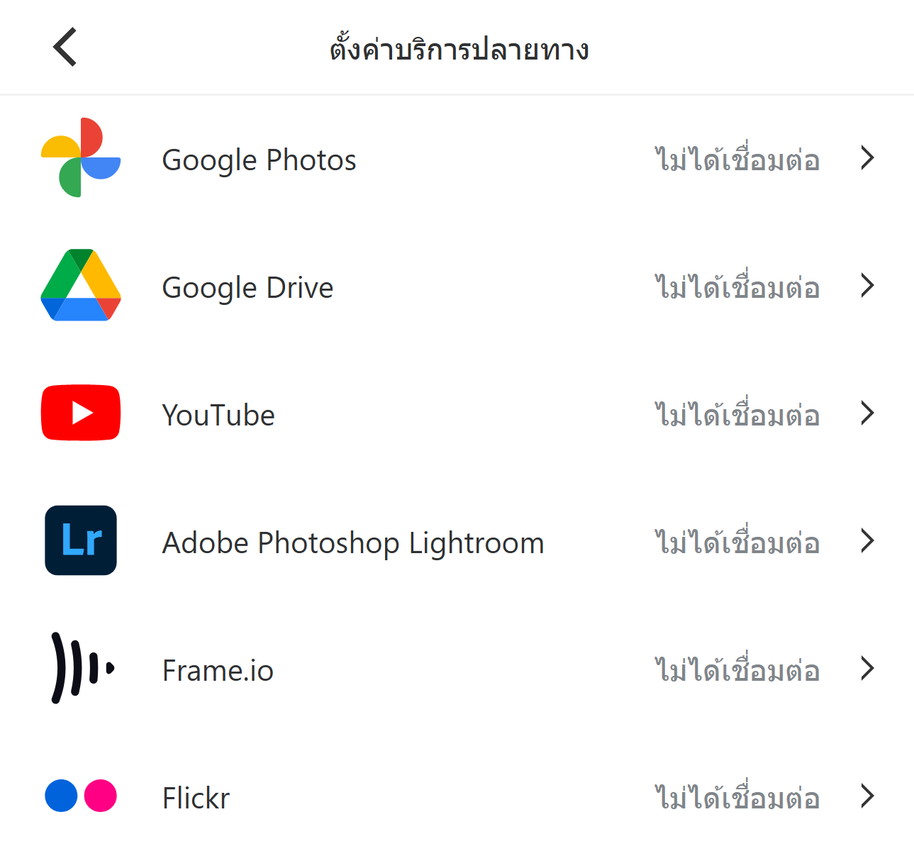 เลือกบริการที่คุณต้องการเชื่อมต่อเพื่อเปิดหน้าจอการตั้งค่า