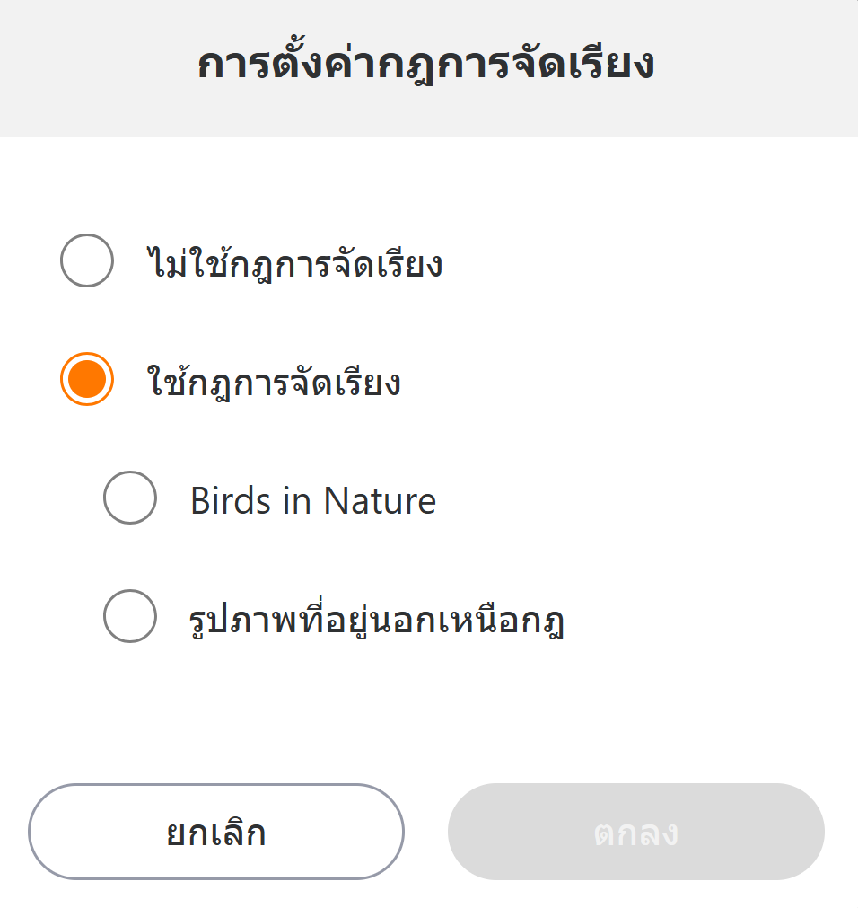 จะไม่มีการสร้างโฟลเดอร์ รูปภาพที่ตรงกับกฎการจัดเรียงที่ระบุจะถูกโอนย้าย