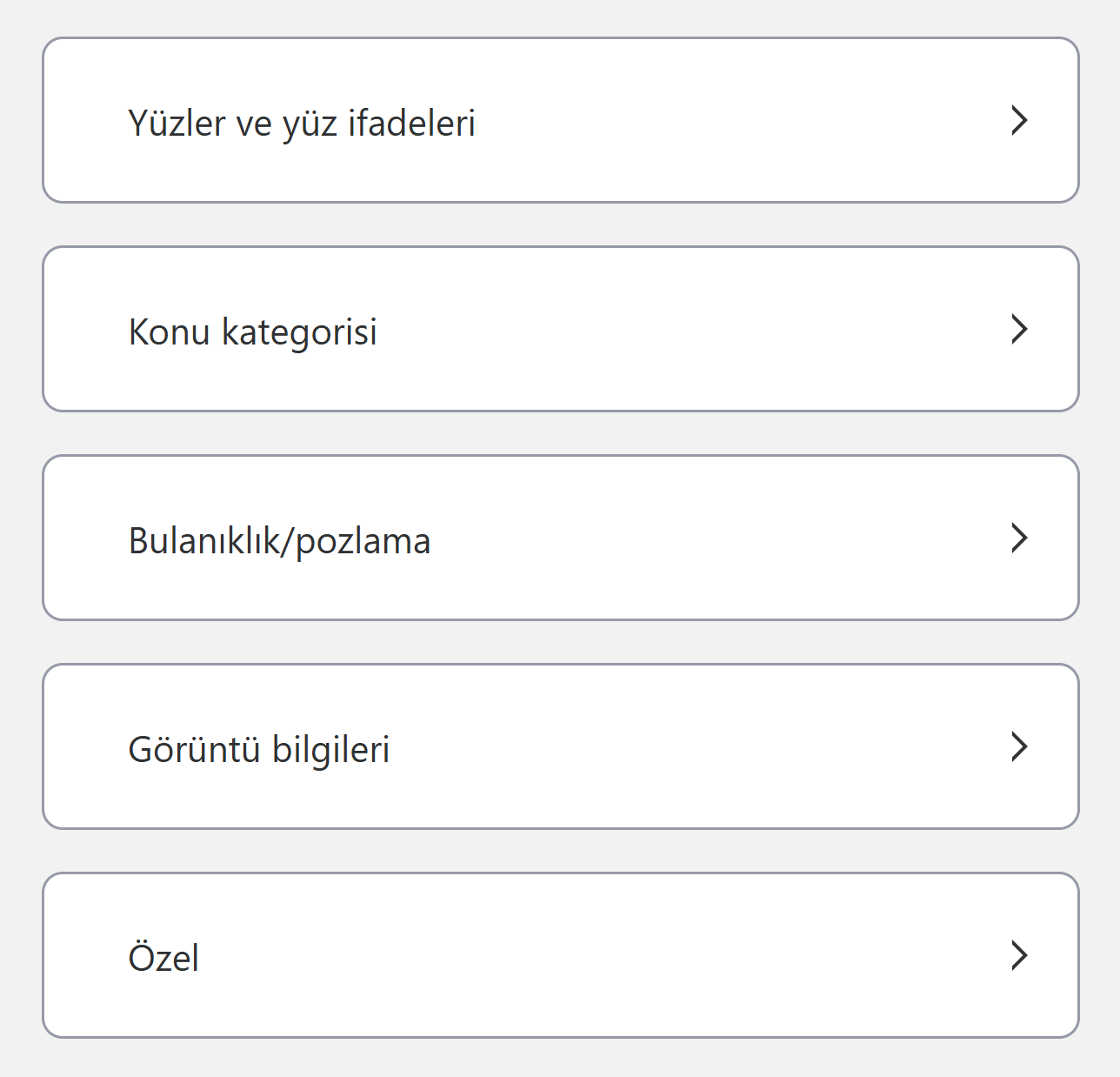 Görüntüleri, bir kişinin yüz ifadesinin gülümseyip gülümsemediğine göre sıralayabilirsiniz. Bir kişinin yüzü kayıtlıysa, kayıtlı kişilerden en az biri gülümsüyorsa görüntü gülümseyen olarak kabul edilir. Bir kişinin yüzü kayıtlı değilse, tespit edilen kişilerden en az biri gülümsüyorsa görüntü gülümseyen olarak kabul edilir. |