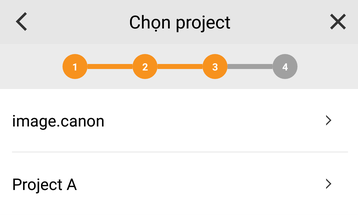 Chọn dự án. Nếu bạn chưa có dự án, dự án "image.canon" sẽ được tạo và chọn.
