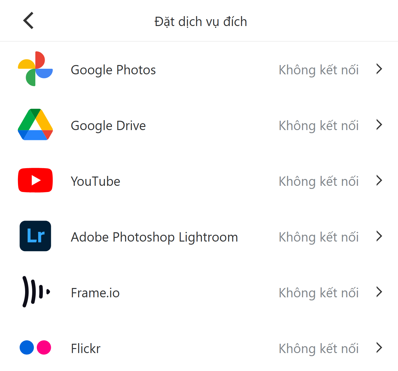 Tự động chuyển tiếp hình ảnh đến Google Photos, Google Drive, Adobe Lightroom và Frame.io. Thông tin hình ảnh được sử dụng để sắp xếp sẽ có sẵn tại đích đến.