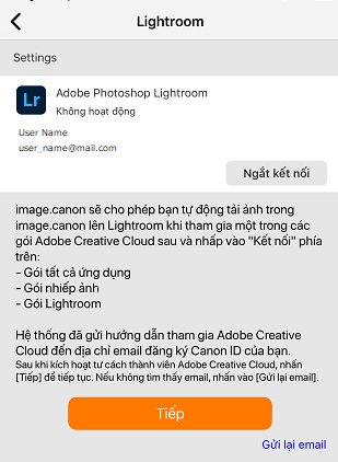Để kết nối với Adobe Photoshop Lightroom, bạn phải đăng ký dịch vụ phù hợp.
