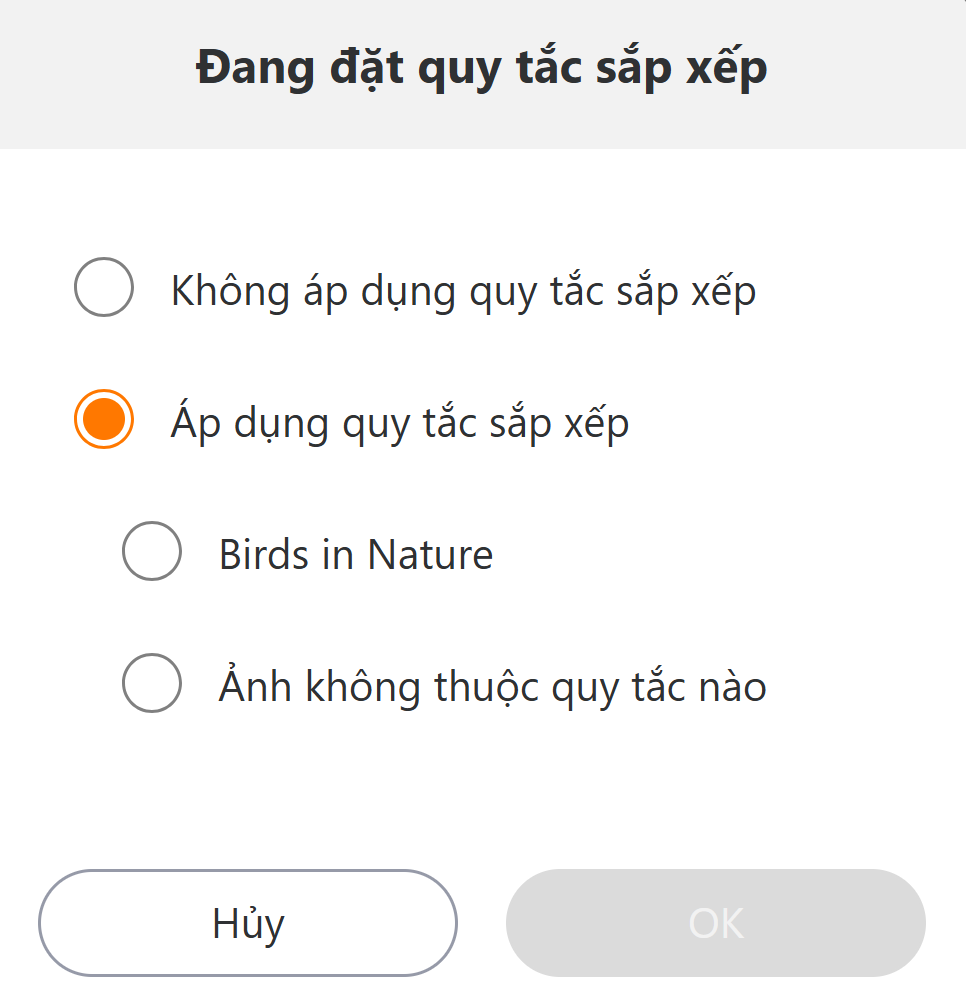 Sẽ không có thư mục nào được tạo. Hình ảnh phù hợp với các quy tắc sắp xếp đã chỉ định sẽ được chuyển.