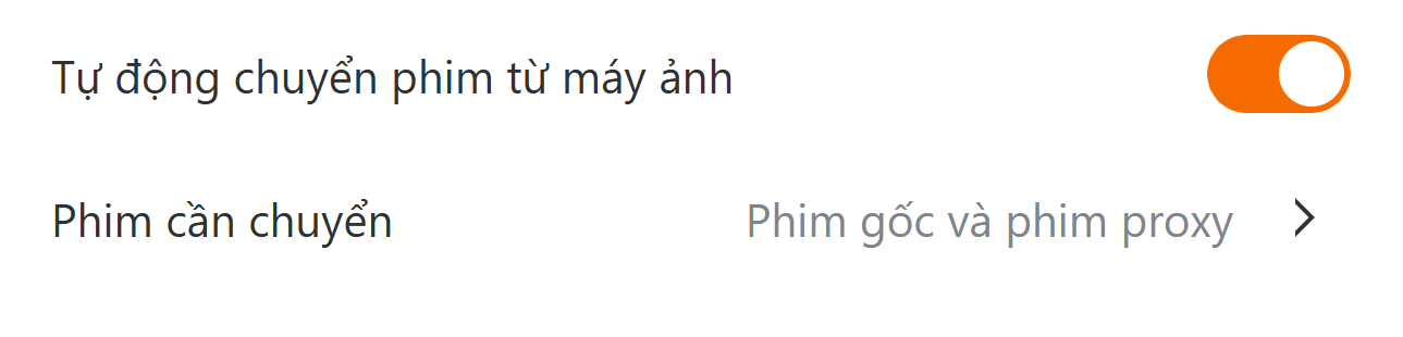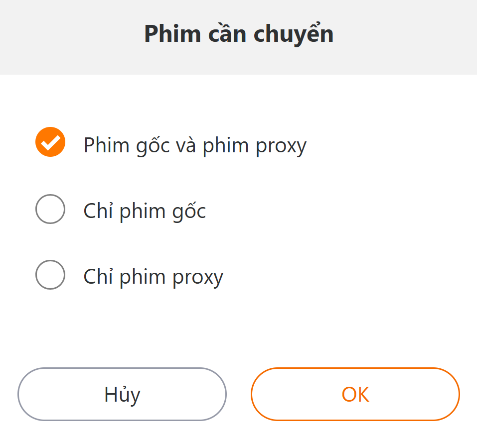 Chọn xem bạn muốn chuyển video chính hay video proxy khi tải tệp video lên. Chỉ những mẫu máy hỗ trợ video proxy mới có thể tải lên.