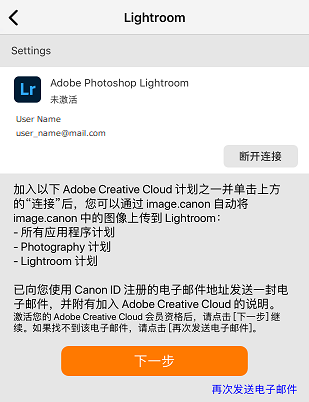 如果您当前未订阅符合条件的套餐,您将收到一封 Adobe 套餐订阅通知邮件,发送至您的 Canon ID 邮箱地址。