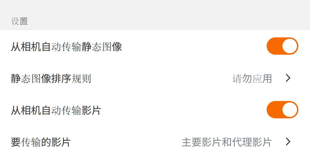 分别设置静态图像和视频的自动传输。Google 相册目前仅支持静态图像的设置。